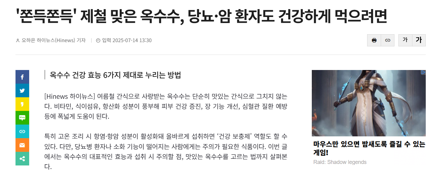 특히 초당옥수수와 같은 고당도 품종은 당뇨 환자에게는 피해야 할 식품입니다.